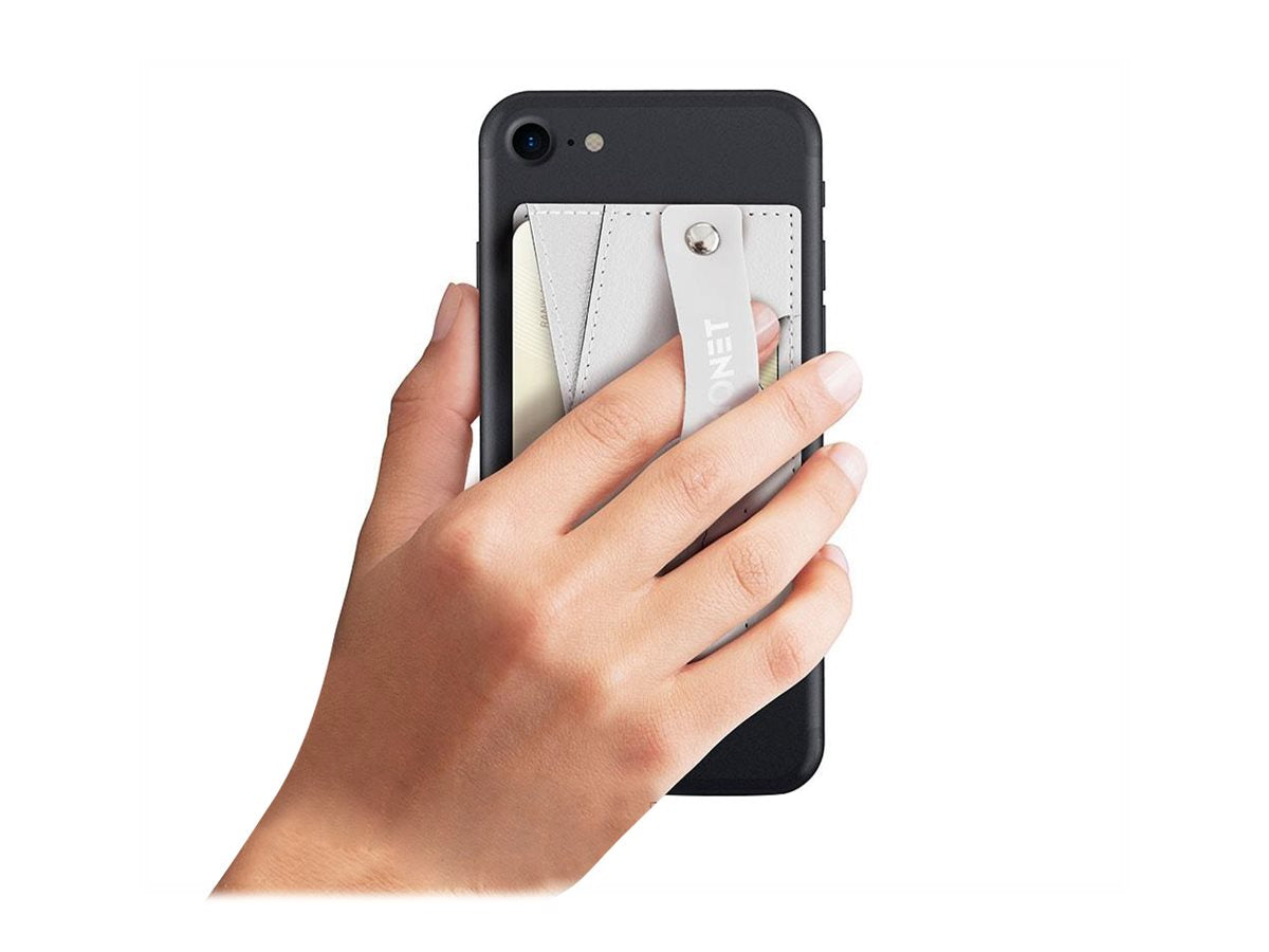 The Monet has a slim grip that slides flat when your phone is in your pocket. Using the grip is so fun, effortless, and reduces the chances you will drop your phone. The grip slides open to fit multiple hand sizes when texting or taking selfies. The grip also works as a kickstand so that you can watch movies easier or Facetime without holding your phone. Of course, it also can carry money, credit cards, and ID's. No more dropping phones, no more strain on your fingers, and no more boring cell phone cases.